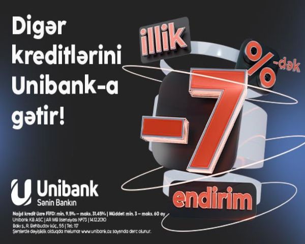 “Unibank”ın 7 %-dək endirimli kredit kampaniyasının bitməsinə az qaldı!